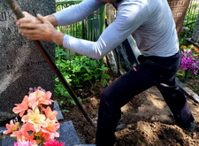 Затем мы вновь вернулись на кладбище: нам предстояло демонтировать основание надгробья, с чем мы и справились на следующем этапе работы.