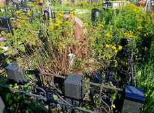 Очередной заказ по уборке небольшого места захоронения. Несмотря на наземное покрытие, на данной могиле проросли высокие сорняки, практически полностью скрывшие памятник. В целом, эта могила – яркий пример того, что случается даже с ухоженными местами захоронения без регулярной уборки.